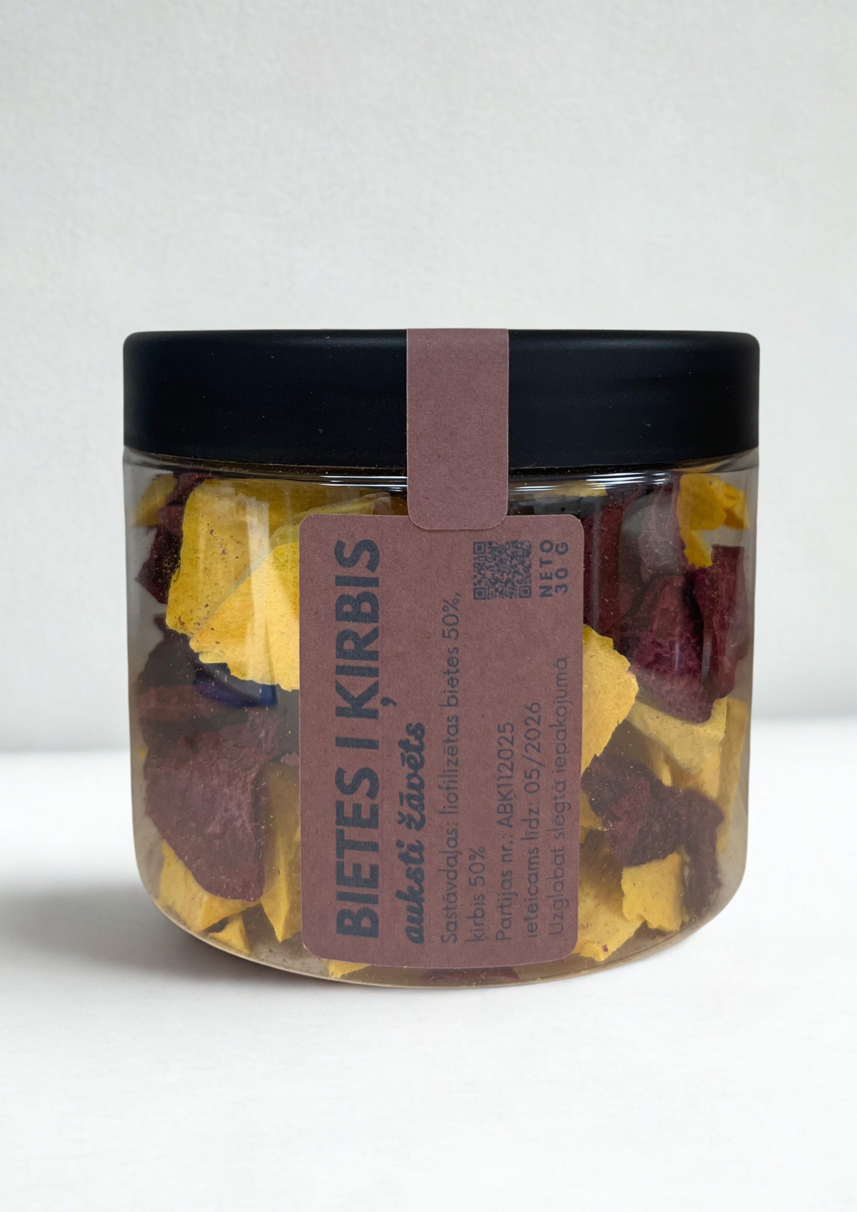 Liofilizācijas procesā bietes un ķirbis saglabā savas vērtīgās uzturvielas, dabisko krāsu un aromātu, kļūstot par vieglu, kraukšķīgu un īpaši tīru našķi. Katrs gabaliņš ir kā spilgts rudens akcents, ko var baudīt gan ikdienā, gan īpašos brīžos.