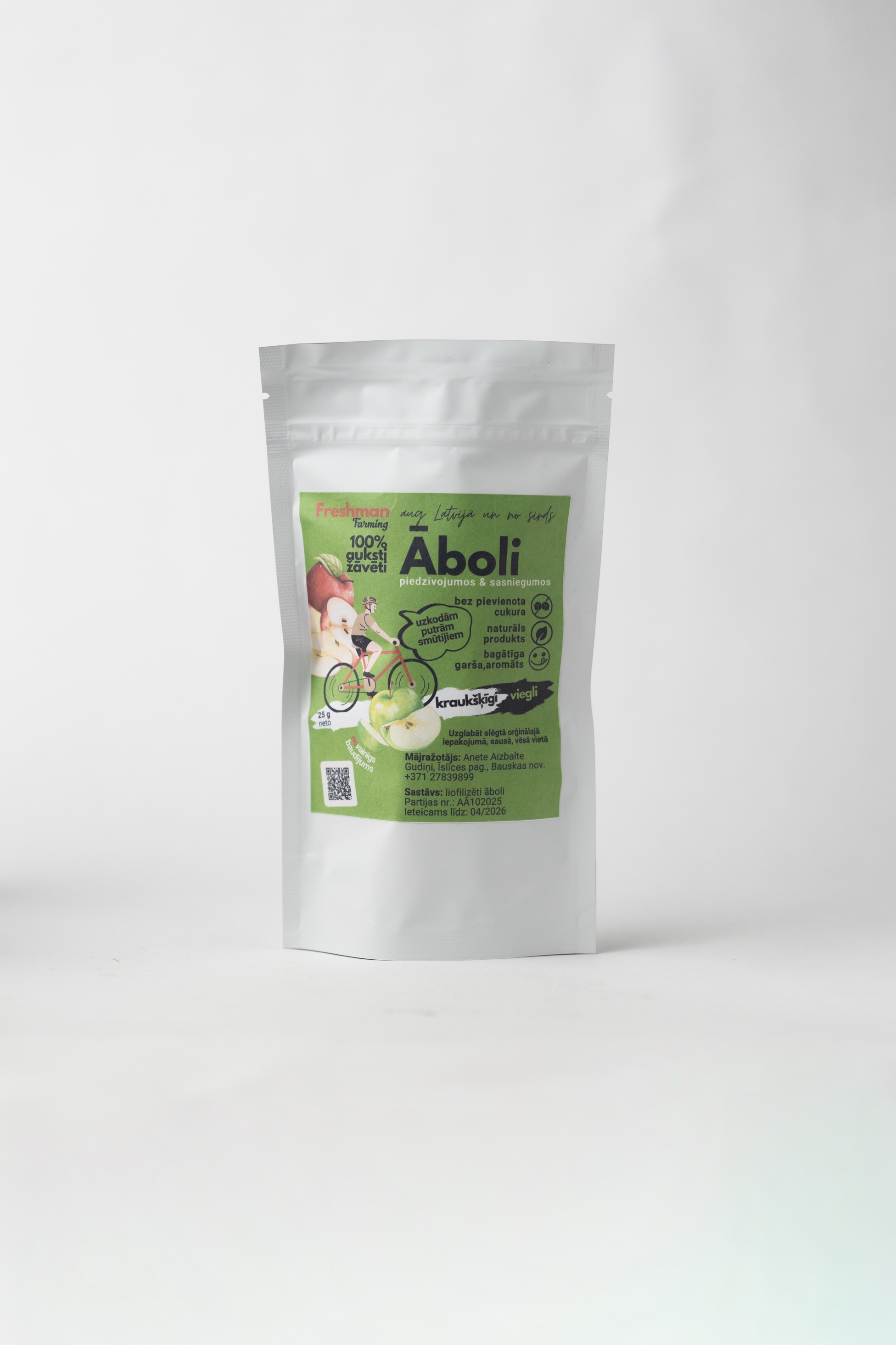 Svaigi, skābeni-saldie āboli pārtop bērnības garšas kraukšķī — kā atgādinājums par rūpēm, mīlestību un dabas dāsnumu. Viegli, aromātiski, nevainojami pufīgi. Kādam siltas atmiņas, citam iecienītākais našķis bez pievienota cukura un cita fū.