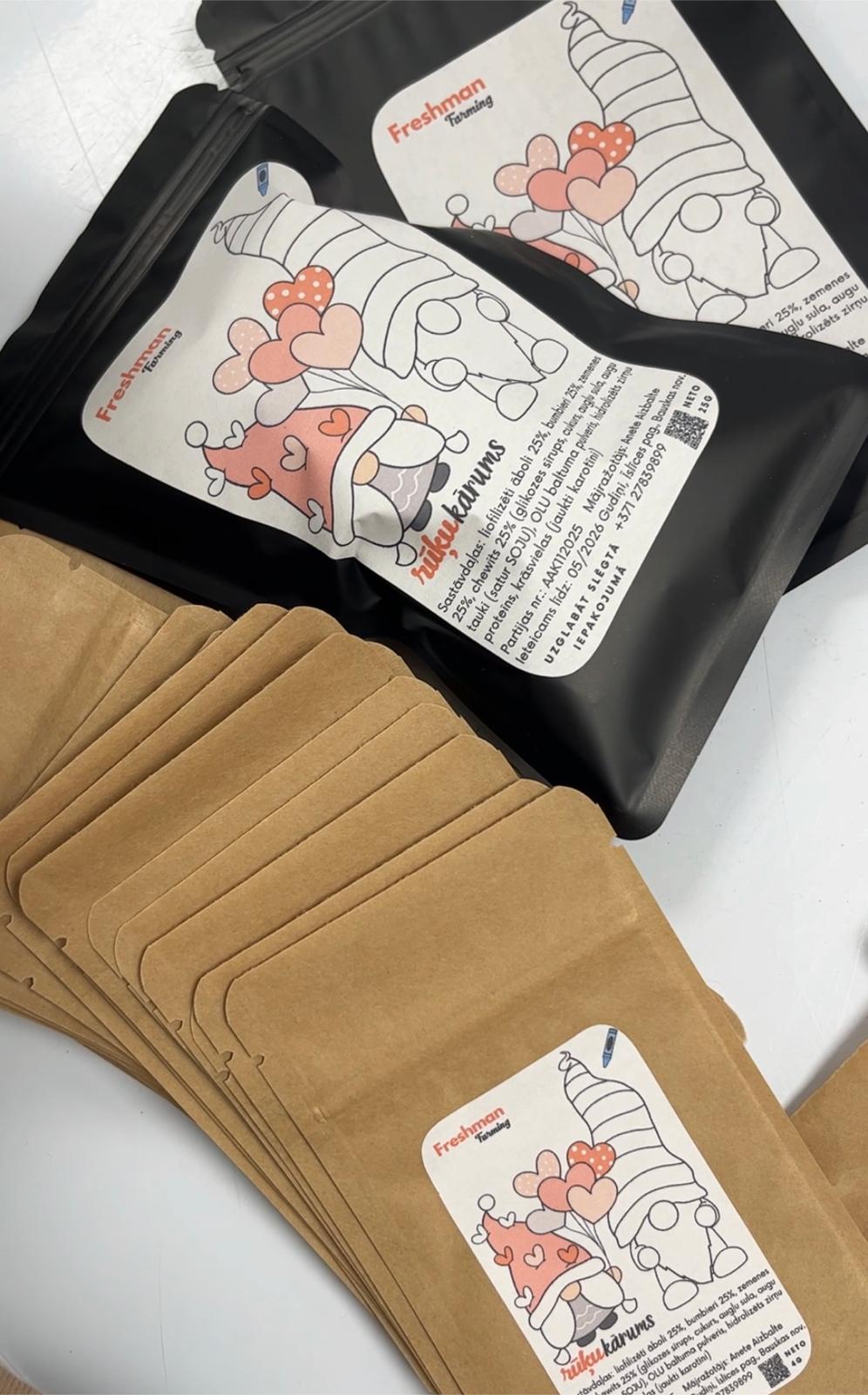 • Liofilizētas zemenes (25%) – intensīva ogu garša jebkurā sezonā.